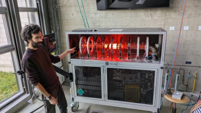 The tour included a demonstration of the “Helios” project, which is a compact platform capable of producing Neon and Argon plasmas, with the possibility of applying a longitudinal magnetic field to visualize how plasma propagates along magnetic field lines.