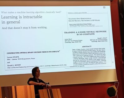 It was a privilege to attend sessions led by Berta Casas (Barcelona Supercomputing Center), who provided a deep dive into Variational Quantum Algorithms; Maria Schuld (Formerly Xanadu), who gave an enlightening talk on Quantum Machine Learning; and Mari Carmen Bañuls (Max Planck Institute of Quantum Optics), whose expertise in Tensor Networks offered a unique perspective on complex systems.